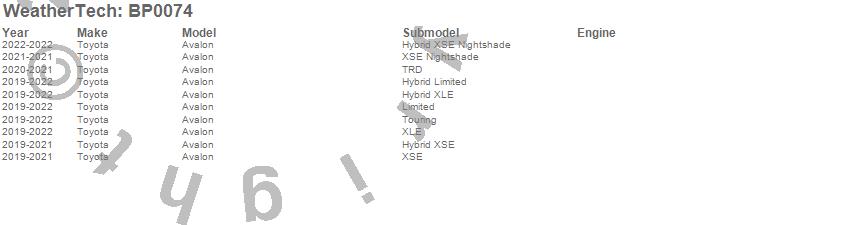 Below is an abbreviated list of applications for the BumperTopper.Avalon, Toyota, 2022, 2021, 2020, 2019