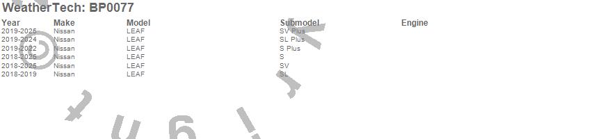 Below is an abbreviated list of applications for the BumperTopper.LEAF, Nissan, 2025, 2024, 2023, 2022, 2021, 2020, 2019, 2018