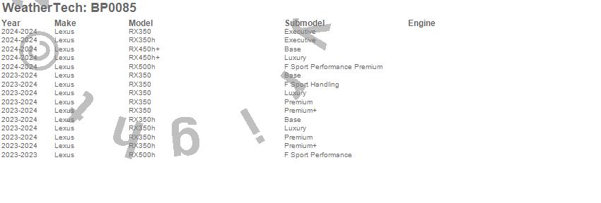 Below is an abbreviated list of applications for the BumperTopper.RX350, RX350h, RX450h+, RX500h, Lexus, 2026, 2025, 2024, 2023