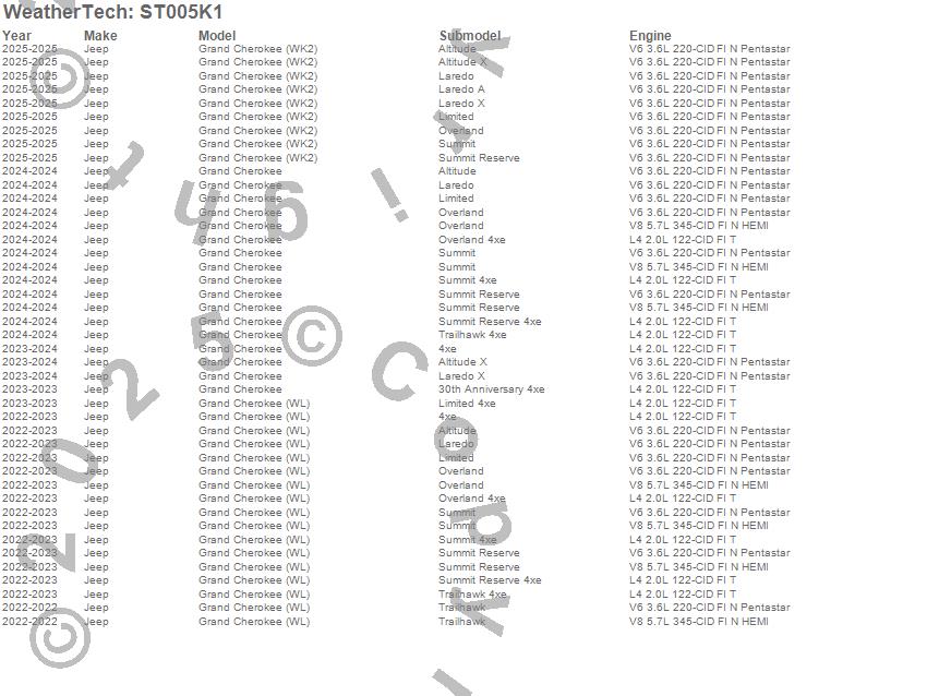 Below is an abbreviated list of applications for the Sill Protector.Grand Cherokee, Grand Cherokee (WK2), Grand Cherokee (WL), Jeep, 2025, 2024, 2023, 2022