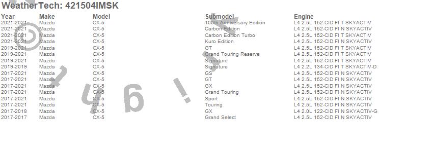 Below is an abbreviated list of applications for the SeatBack Cargo Liner HP w/Bumper Protector.CX-5, Mazda, 2021, 2020, 2019, 2018, 2017
