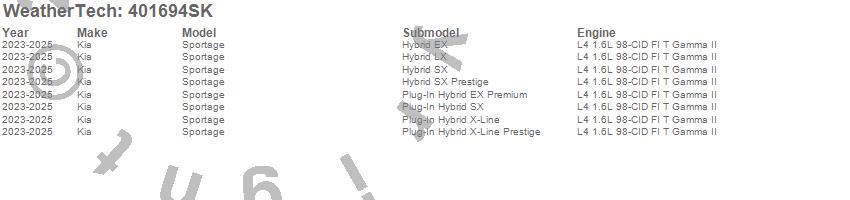 Below is an abbreviated list of applications for the Cargo Liner w/Bumper Protector.Sportage, Kia, 2025, 2024, 2023
