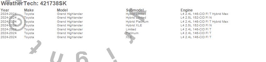 Below is an abbreviated list of applications for the Cargo Liner w/Bumper Protector.Grand Highlander, Toyota, 2026, 2025, 2024