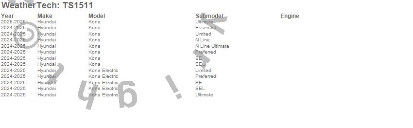 Below is an abbreviated list of applications for the WeatherTech SunShade.Kona, Kona Electric, Hyundai, 2025, 2024