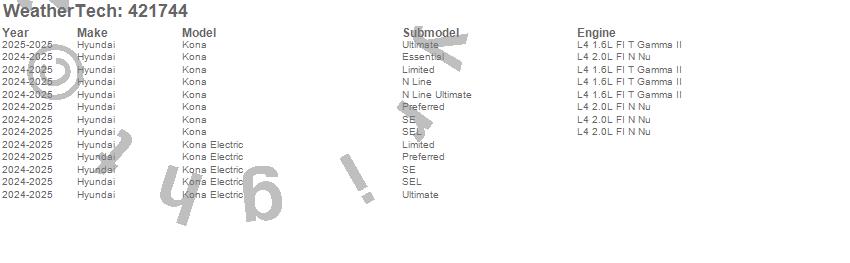 Below is an abbreviated list of applications for the Cargo Liner.Kona, Kona Electric, Hyundai, 2026, 2025, 2024