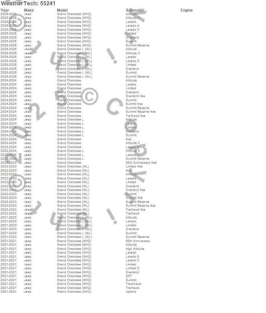 Below is an abbreviated list of applications for the Low Profile Aerodynamic Hood Protector.Grand Cherokee, Grand Cherokee (WK2), Grand Cherokee (WL), Grand Cherokee L, Grand Cherokee L (WL), Jeep, 2025, 2024, 2023, 2022, 2021