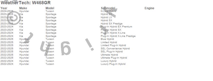 Below is an abbreviated list of applications for the All Weather Floor Mats.Sportage, Tucson, Hyundai, Kia, 2025, 2024, 2023, 2022