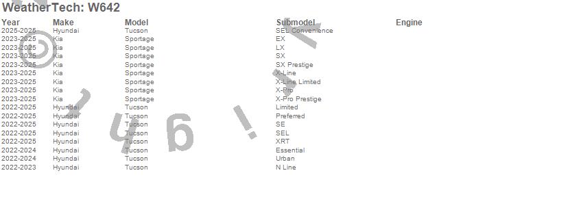 Below is an abbreviated list of applications for the All Weather Floor Mats.Sportage, Tucson, Hyundai, Kia, 2025, 2024, 2023, 2022