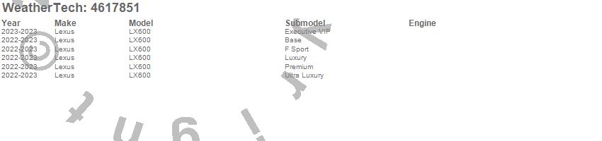 Below is an abbreviated list of applications for the FloorLiner DigitalFit.LX600, Lexus, 2023, 2022