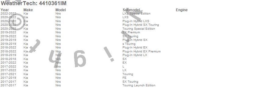 Below is an abbreviated list of applications for the FloorLiner HP.Niro, Kia, 2022, 2021, 2020, 2019, 2018, 2017