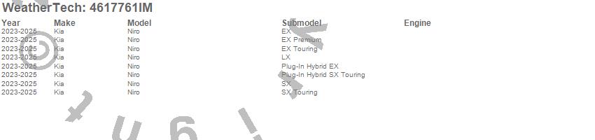 Below is an abbreviated list of applications for the FloorLiner HP.Niro, Kia, 2025, 2024, 2023