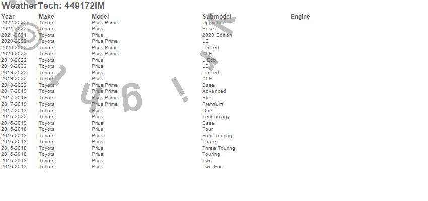 Below is an abbreviated list of applications for the FloorLiner HP.Prius, Prius Prime, Toyota, 2022, 2021, 2020, 2019, 2018, 2017, 2016