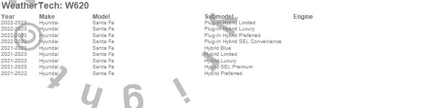 Below is an abbreviated list of applications for the All Weather Floor Mats.Santa Fe, Hyundai, 2023, 2022, 2021