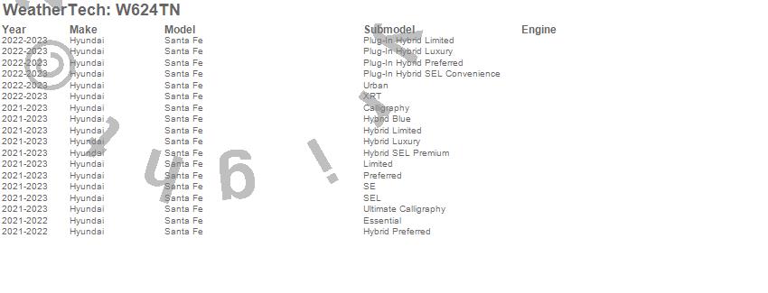 Below is an abbreviated list of applications for the All Weather Floor Mats.Santa Fe, Hyundai, 2023, 2022, 2021