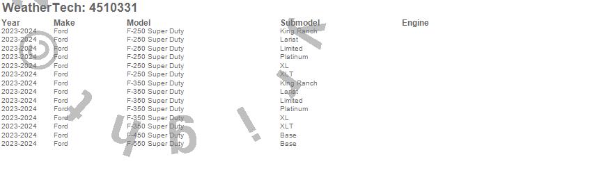 Below is an abbreviated list of applications for the FloorLiner DigitalFit.F-250 Super Duty, F-350 Super Duty, F-450 Super Duty, F-550 Super Duty, Ford, 2026, 2025, 2024, 2023