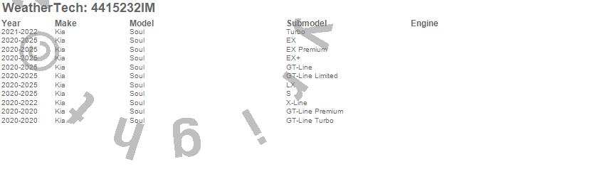 Below is an abbreviated list of applications for the FloorLiner HP.Soul, Kia, 2025, 2024, 2023, 2022, 2021, 2020