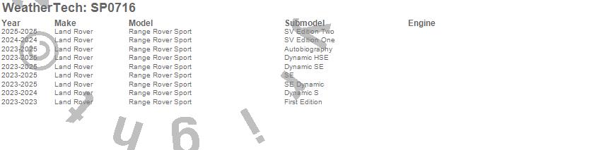 Below is an abbreviated list of applications for the Scratch Protection Film.Range Rover Sport, Land Rover, 2025, 2024, 2023