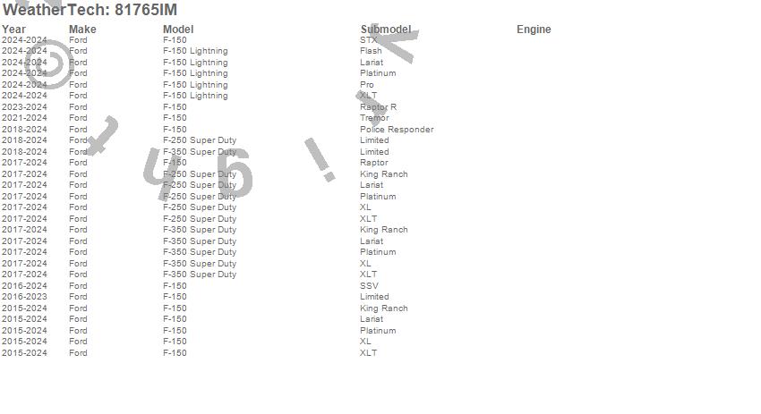 Below is an abbreviated list of applications for the Side Window Deflector.F-150, F-150 Lightning, F-250 Super Duty, F-350 Super Duty, Ford, 2026, 2025, 2024, 2023, 2022, 2021, 2020, 2019, 2018, 2017, 2016, 2015