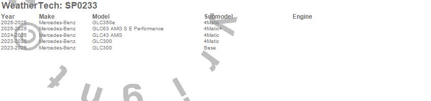 Below is an abbreviated list of applications for the Scratch Protection Film.GLC300, GLC350e, GLC43 AMG, GLC63 AMG S E Performance, Mercedes-Benz, 2026, 2025, 2024, 2023