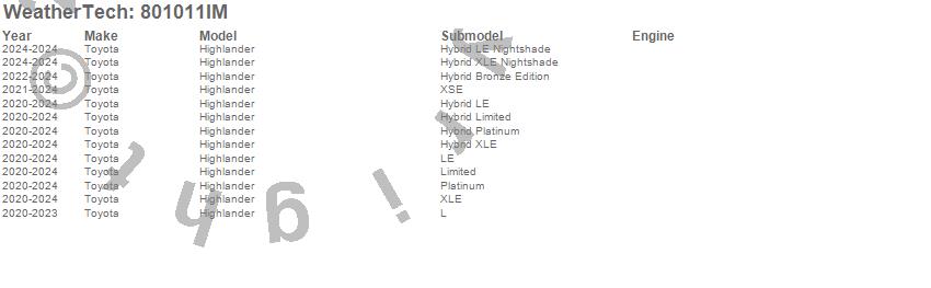 Below is an abbreviated list of applications for the Side Window Deflector.Highlander, Toyota, 2025, 2024, 2023, 2022, 2021, 2020