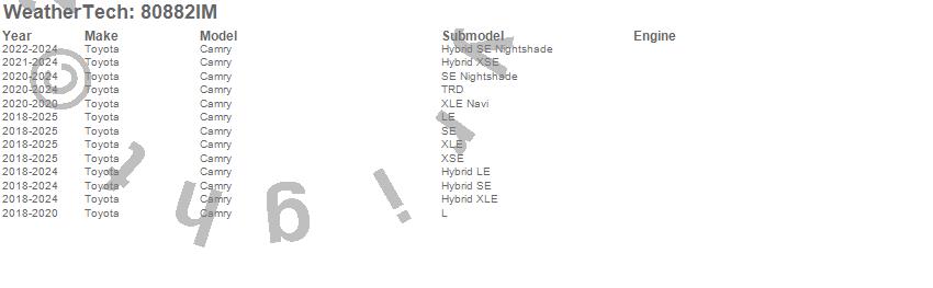 Below is an abbreviated list of applications for the Side Window Deflector.Camry, Toyota, 2026, 2025, 2024, 2023, 2022, 2021, 2020, 2019, 2018