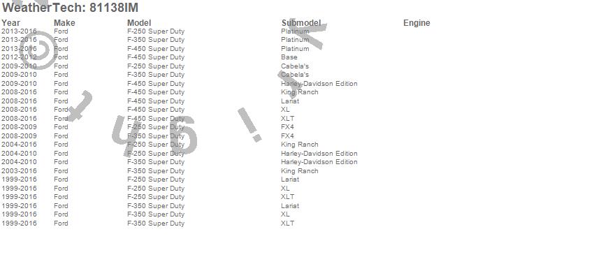 Below is an abbreviated list of applications for the Side Window Deflector.F-250 Super Duty, F-350 Super Duty, F-450 Super Duty, Ford, 2016, 2015, 2014, 2013, 2012, 2011, 2010, 2009, 2008, 2007, 2006, 2005, 2004, 2003, 2002, 2001