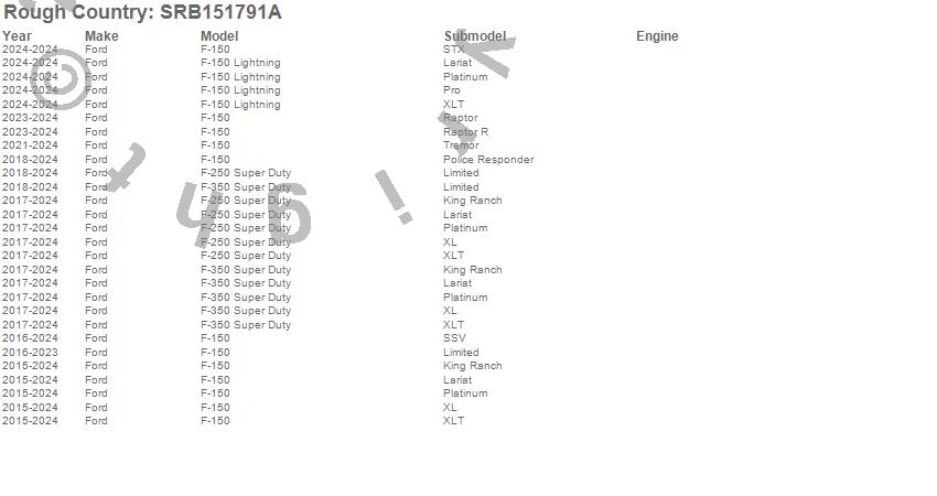 Brand: Rough CountryPart Number: SRB151791ARunning Board Type: Aluminum - Crew CabUPC: 840269939778