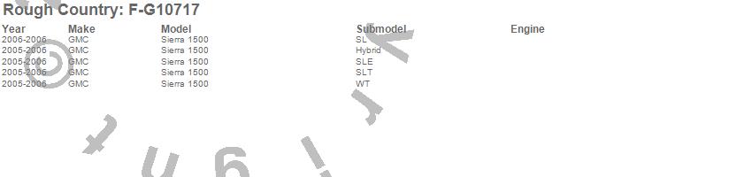 Brand: Rough CountryPart Number: F-G10717Fender Flare Type: 5 ft. 9 in. Bed - Flat BlackUPC: 840269942112