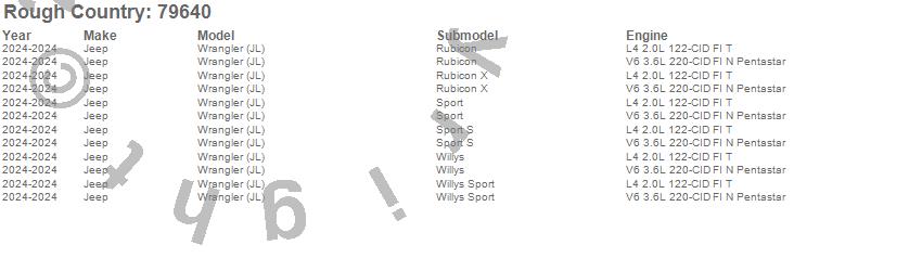 Below is an abbreviated list of applications for the Suspension Lift Kit w/Shocks.Wrangler (JL), Jeep, 2024