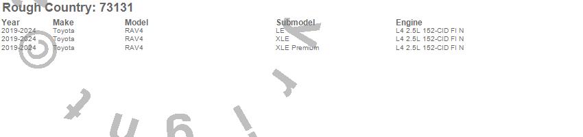 Below is an abbreviated list of applications for the Suspension Lift Kit w/N3 Shocks.RAV4, Toyota, 2024, 2023, 2022, 2021, 2020, 2019