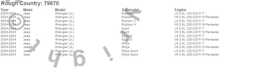 Below is an abbreviated list of applications for the Suspension Lift Kit w/V2 Shocks.Wrangler (JL), Jeep, 2024