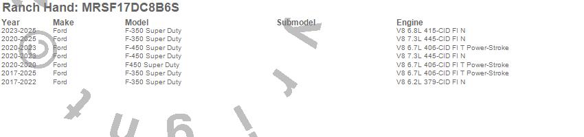 Brand: Ranch HandPart Number: MRSF17DC8B6SNerf/Step Bar (Wheel to Wheel) Type: BlackUPC: 848917010367