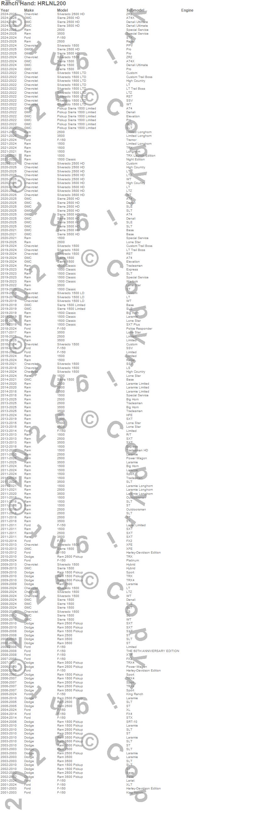 Below is an abbreviated list of applications for the Legend Series Headache Rack.1500, 1500 Classic, 2500, 3500, Colorado, F-150, Pickup Sierra 1500 Limited, Ram 1500, Ram 2500, Ram 3500, Sierra 1500, Sierra 1500 Limited, Sierra 2500 HD, Sierra 3500 HD, Silverado 1500, Silverado 1500 LD, Silverado 1500 LTD, Silverado 2500 HD, Silverado 3500 HD, Chevrolet