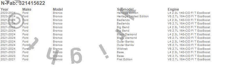 Below is an abbreviated list of applications for the Cab Length Nerf Step RS Bar.Bronco, Ford, 2025, 2024, 2023, 2022, 2021