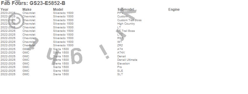 Below is an abbreviated list of applications for the Vengeance Rear Bumper.Sierra 1500, Silverado 1500, Chevrolet, GMC, 2025, 2024, 2023, 2022