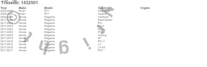 Below is an abbreviated list of applications for the Pro X15 Tonneau Cover.R1T, Ridgeline, Honda, Rivian, 2025, 2024, 2023, 2022, 2021, 2020, 2019, 2018, 2017