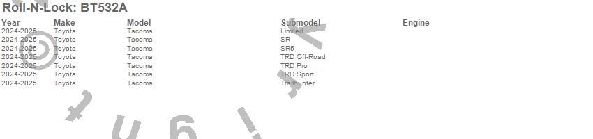 Below is an abbreviated list of applications for the Roll-N-Lock A-Series Truck Bed Cover.Tacoma, Toyota, 2025, 2024