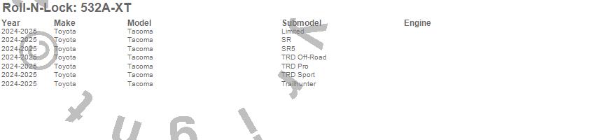 Below is an abbreviated list of applications for the Roll-N-Lock A-Series XT Truck Bed Cover.Tacoma, Toyota, 2025, 2024