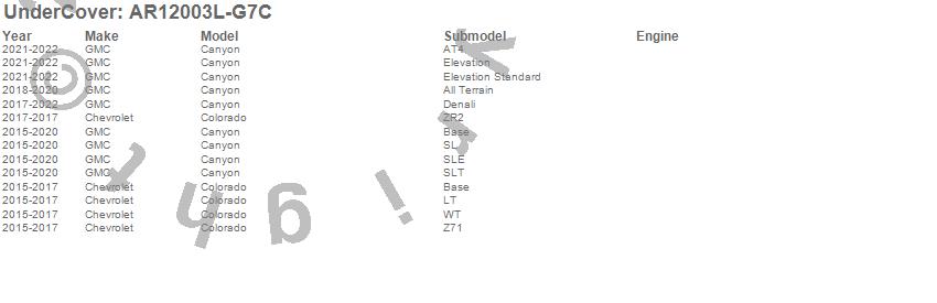Below is an abbreviated list of applications for the UnderCover Fusion.Canyon, Colorado, Chevrolet, GMC, 2022, 2021, 2020, 2019, 2018, 2017, 2016, 2015