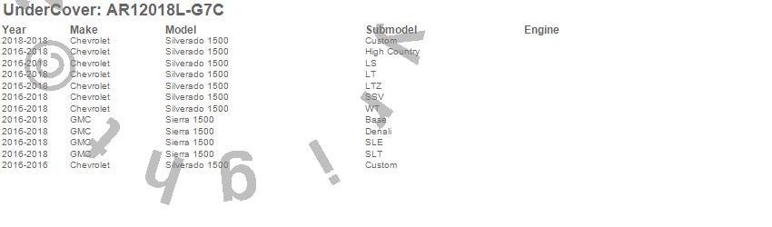 Below is an abbreviated list of applications for the UnderCover Fusion.Sierra 1500, Silverado 1500, Chevrolet, GMC, 2018, 2017, 2016
