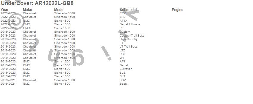 Below is an abbreviated list of applications for the UnderCover Fusion.Sierra 1500, Silverado 1500, Chevrolet, GMC, 2023, 2022, 2021, 2020, 2019
