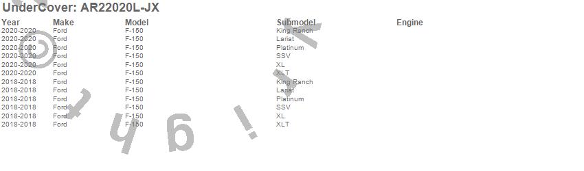 Below is an abbreviated list of applications for the UnderCover Fusion.F-150, Ford, 2020, 2018
