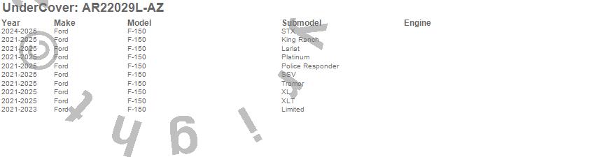 Below is an abbreviated list of applications for the UnderCover Fusion.F-150, Ford, 2025, 2024, 2023, 2022, 2021