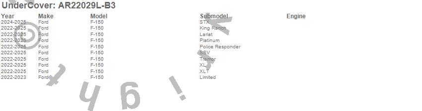 Below is an abbreviated list of applications for the UnderCover Fusion.F-150, Ford, 2025, 2024, 2023, 2022