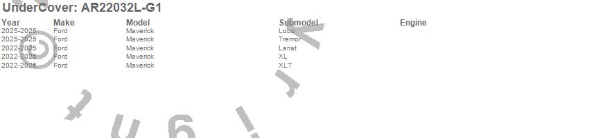 Below is an abbreviated list of applications for the UnderCover Fusion.Maverick, Ford, 2025, 2024, 2023, 2022