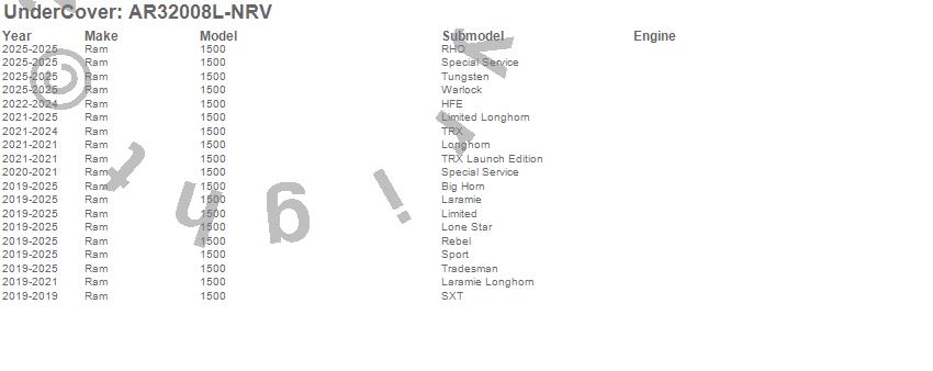 Below is an abbreviated list of applications for the UnderCover Fusion.1500, Ram, 2025, 2024, 2023, 2022, 2021, 2020, 2019