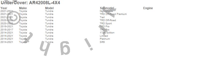 Below is an abbreviated list of applications for the UnderCover Fusion.Tundra, Toyota, 2021, 2020, 2019, 2018, 2017, 2016, 2015, 2014