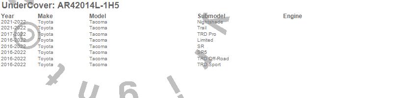 Below is an abbreviated list of applications for the UnderCover Fusion.Tacoma, Toyota, 2022, 2021, 2020, 2019, 2018, 2017, 2016