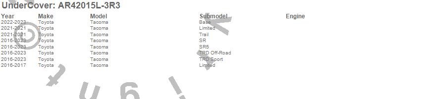 Below is an abbreviated list of applications for the UnderCover Fusion.Tacoma, Toyota, 2023, 2022, 2021, 2020, 2019, 2018, 2017, 2016
