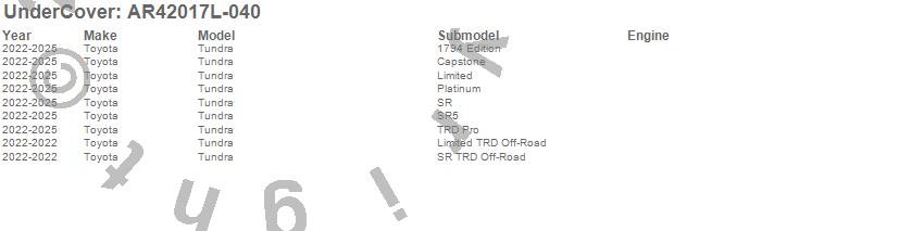 Below is an abbreviated list of applications for the UnderCover Fusion.Tundra, Toyota, 2025, 2024, 2023, 2022